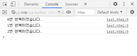 뒤에서 살펴볼 for in 문이나 for of 문과 다르게 for 문의 경우 반복을 제어할 변수를 let으로 지정을 해줘야 한다는 점을 유의하셔야 합니다..!