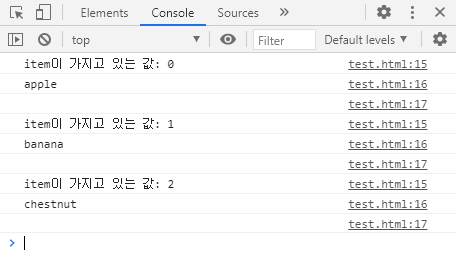 그리고 앞에서 언급했듯이 item에 반복된 순서에 맞는 값이 들어가 있습니다.