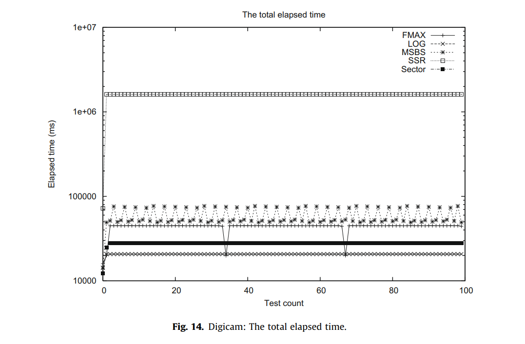 섹터 매핑 체계는 소거 연산을 덜 발생시키지만, 전체 실행 시간은 로그 체계보다 길다.