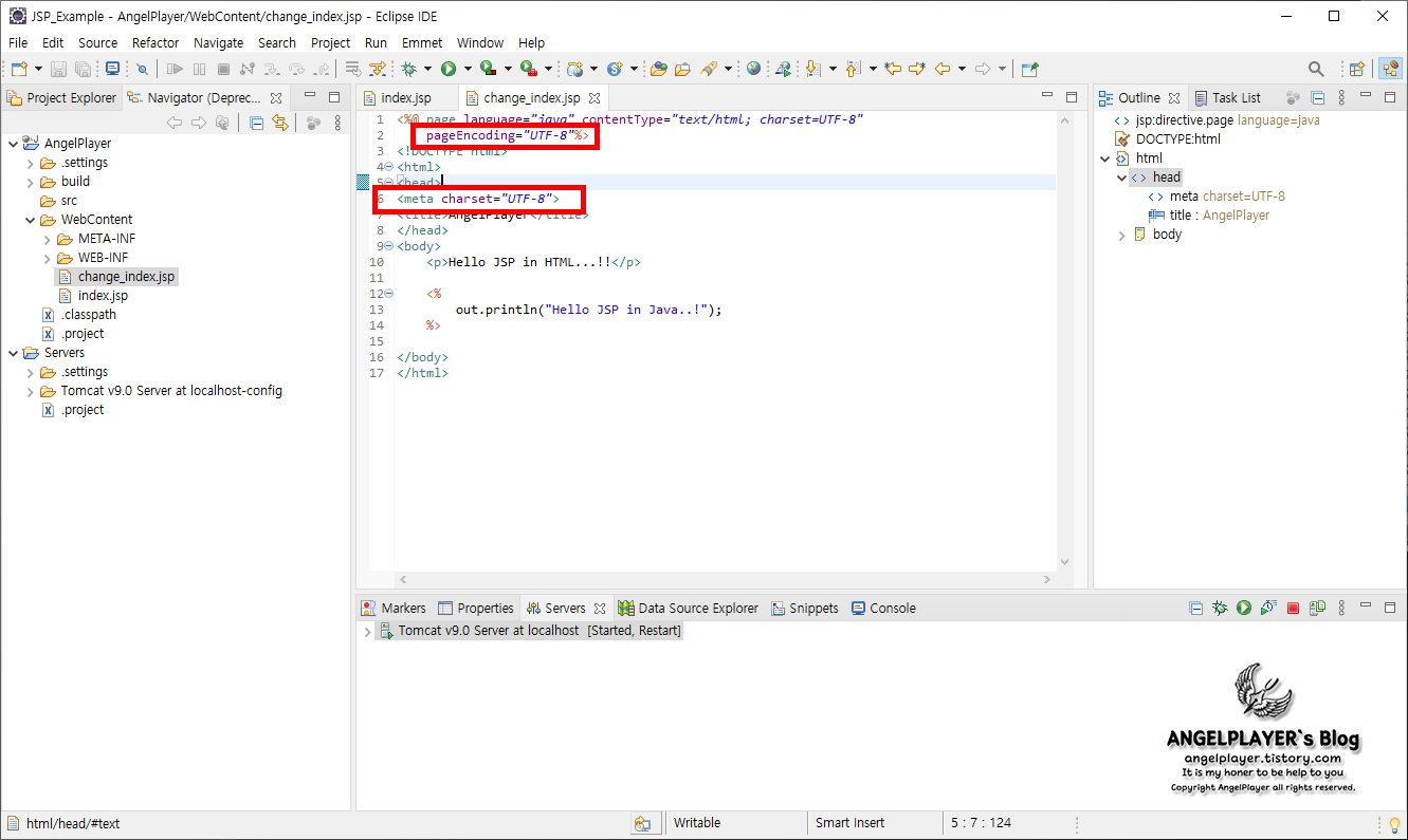 설정이 모두 완료되었다면, 새로 jsp 파일을 생성 시 인코딩 형식이 제대로 변경된 것을 확인하실 수 있습니다..!