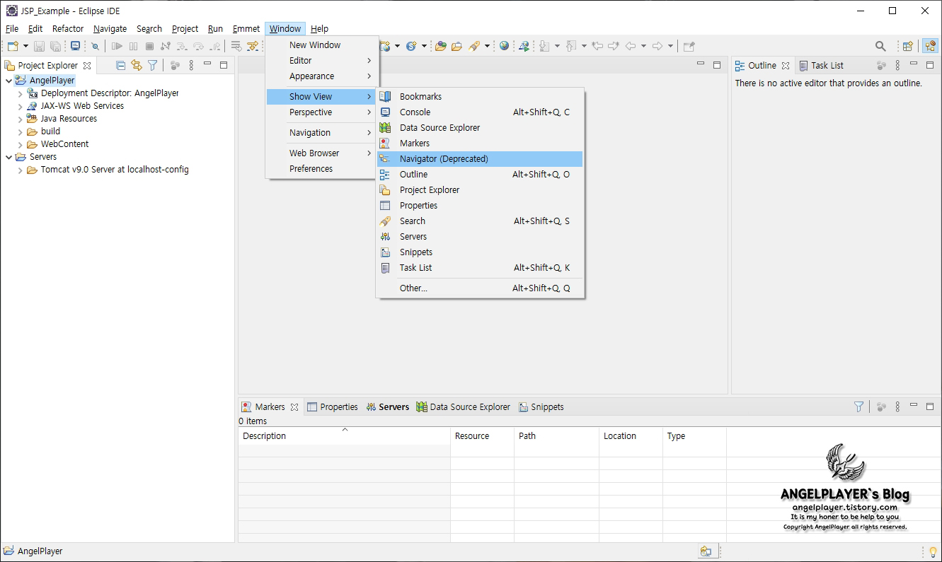 그러면 Project Exploer 우측에 Navigator가 새로 나타난 것을 확인하실 수 있습니다.