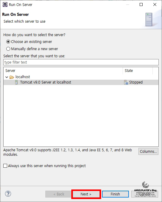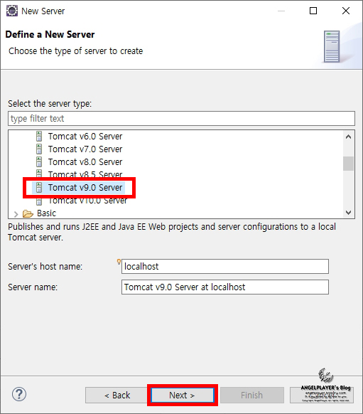 기존에 자신이 설치한 Tomcat 버전에 맞는 Tomcat을 선택한 후 [Next]를 눌러줍니다.