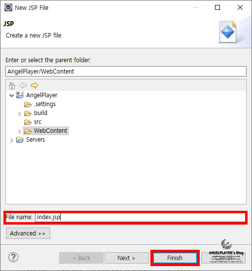 적절한 파일명을 설정하고 [Finish]를 눌러줍니다.