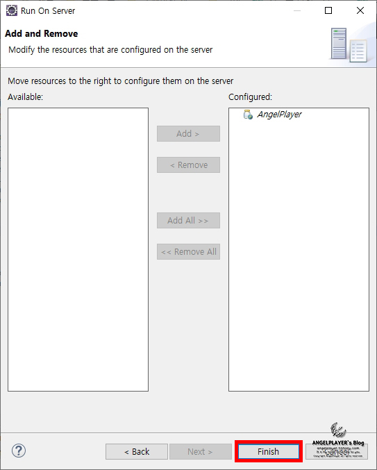 혹시 Project를 추가하였거나, 제대로 세팅되지 않은 경우 [Available]에 Projcet가 위치할 수 있는데, 이때 해당 Project를 선택하여 [Add]를 눌러주시면 됩니다.