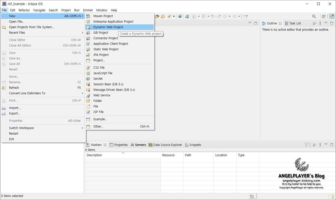 이클립스에서 Dynamic Web Project를 생성하고 이를 통해 jsp 파일을 작성하는 방법에 대해서 알아보도록 하겠습니다.