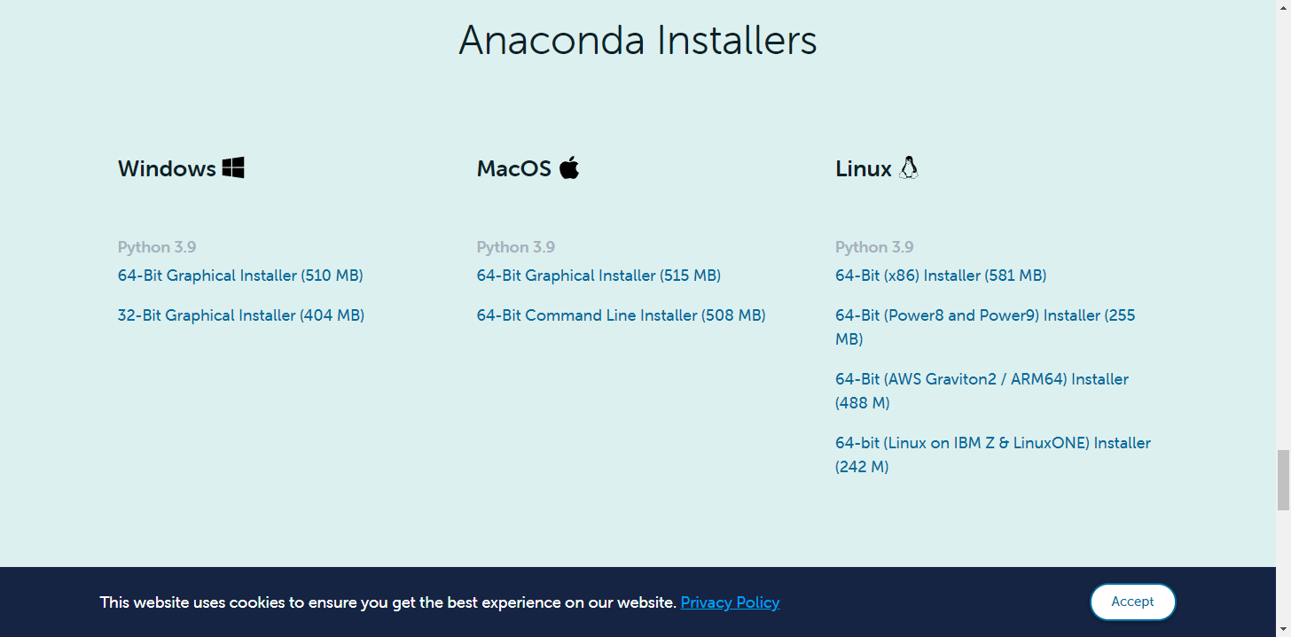 설치는 위 링크에서 수행할 수 있으며, 홈페이지 하단에 OS별 설치 파일이 있으니 알맞은 파일을 다운로드 받으시면 됩니다.