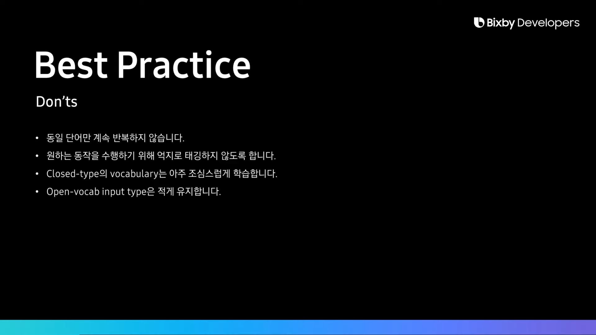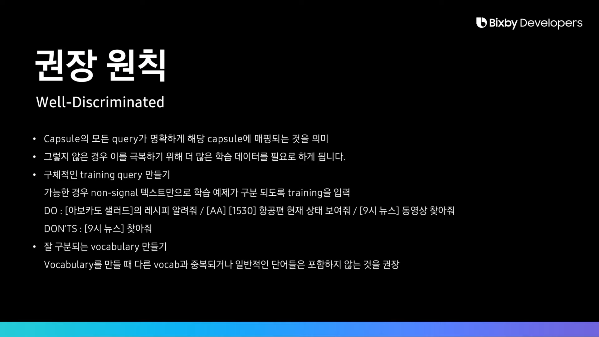빅스비는 대량의 학습 데이터보다는 소량의 정확한 데이터에서 학습이 잘 됨