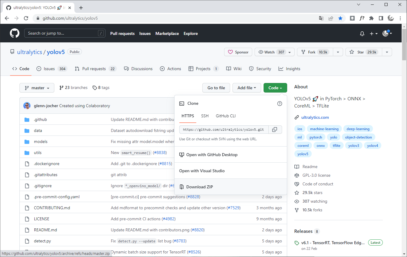github에 있는 yolov5 파일을 다운로드 합니다.