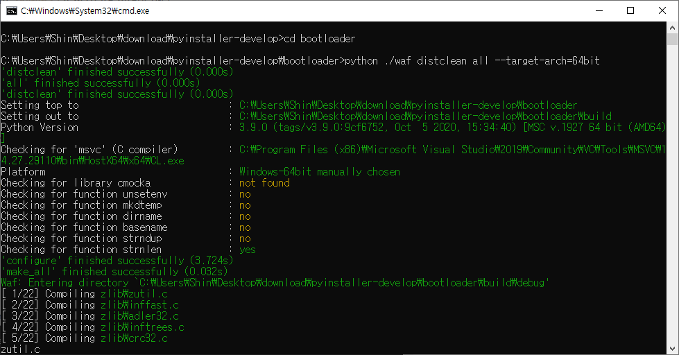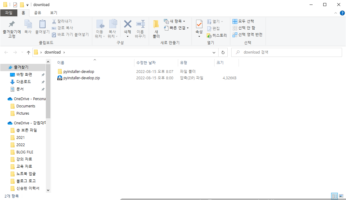 pytinstaller를 위 gitbub 링크에서 직접 다운로드 받아 설치를 진행합니다.
