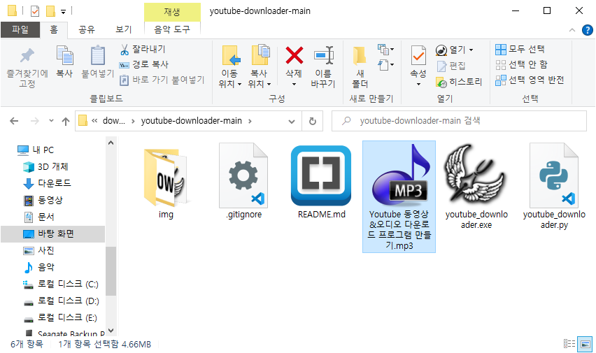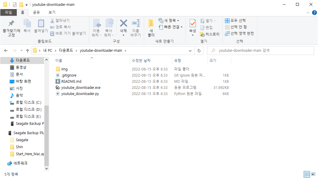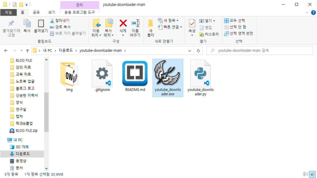 디렉토리 내부 파일 중 [youtube_downloader.exe]를 실행합니다.