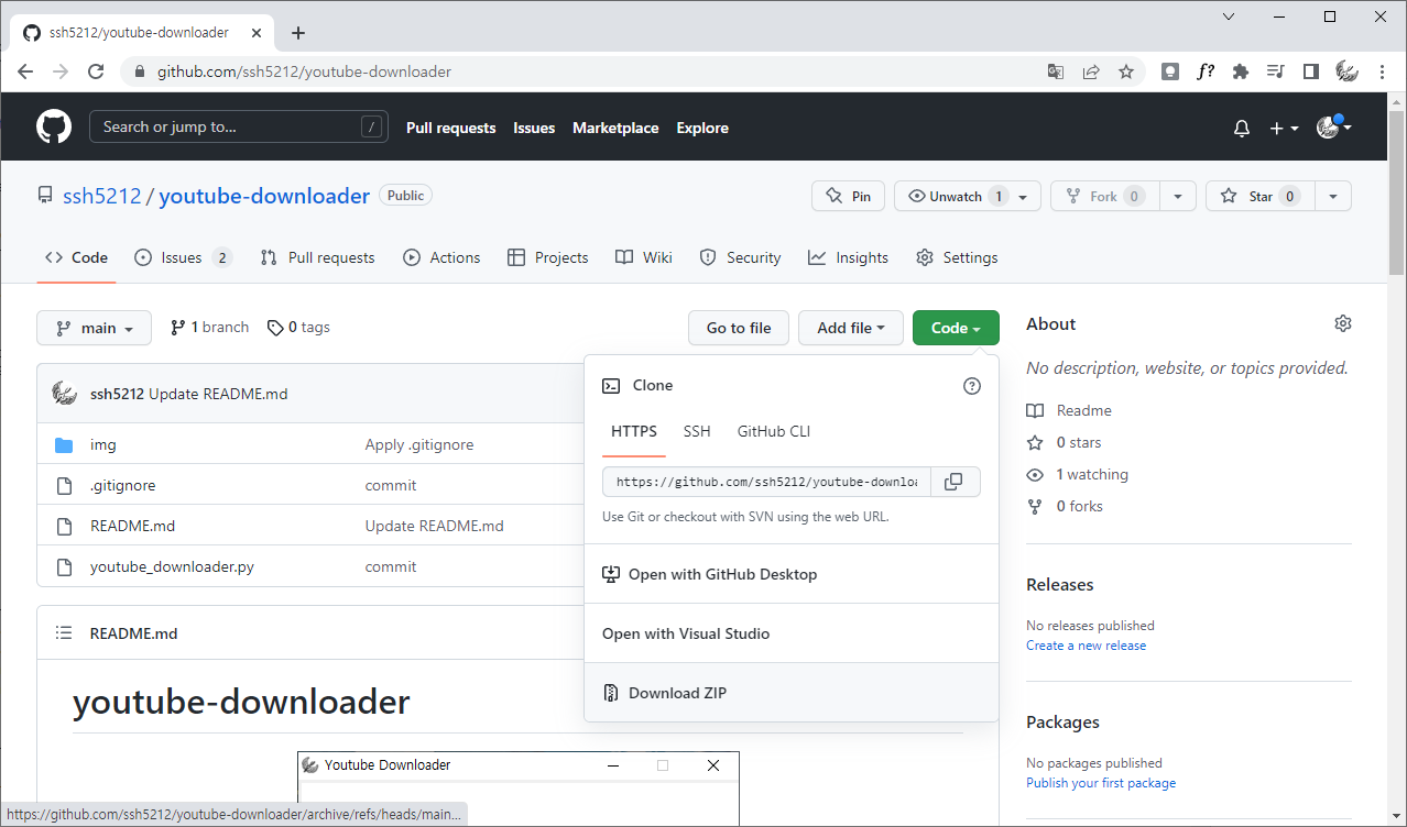 1-2) youtube-downloader 다운로드