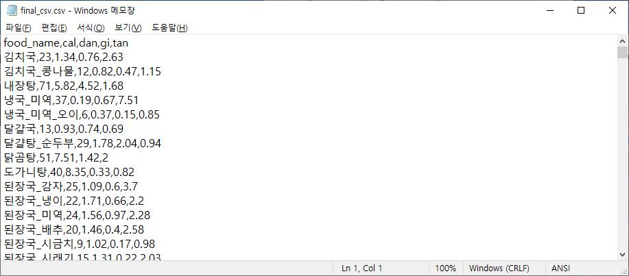 (food_name, cal, dan, gi, tan);