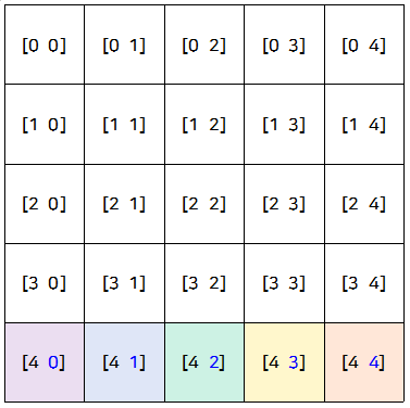 해당 배열을 인덱스로 본다면 좀 더 쉽게 규칙성을 찾을 수 있습니다.