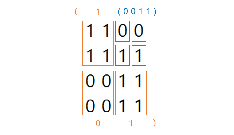 이때 네 영역은 각각 1 0 0 1로 표현가능하므로 (1001) 이 나오게 됩니다.
