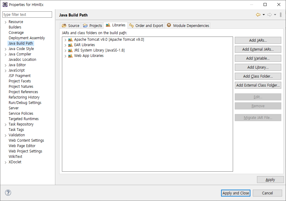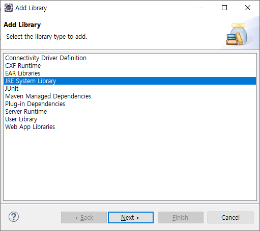 톰켓도 마찬가지로 설치가 정상적으로 진행되었다면 라이브러리 추가 화면에서 설치한 버전의 톰켓이 나타납니다.