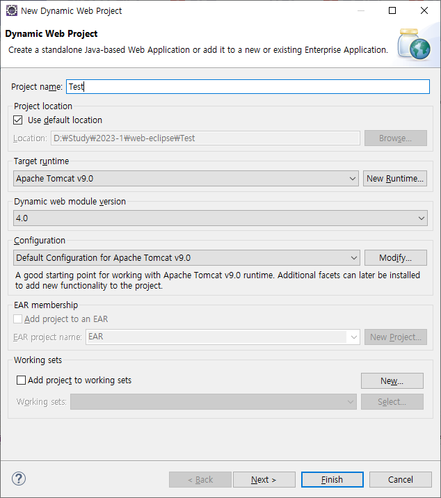 폴더 혹은 파일 경로를 지정한 후 Finish를 눌러줍니다.
