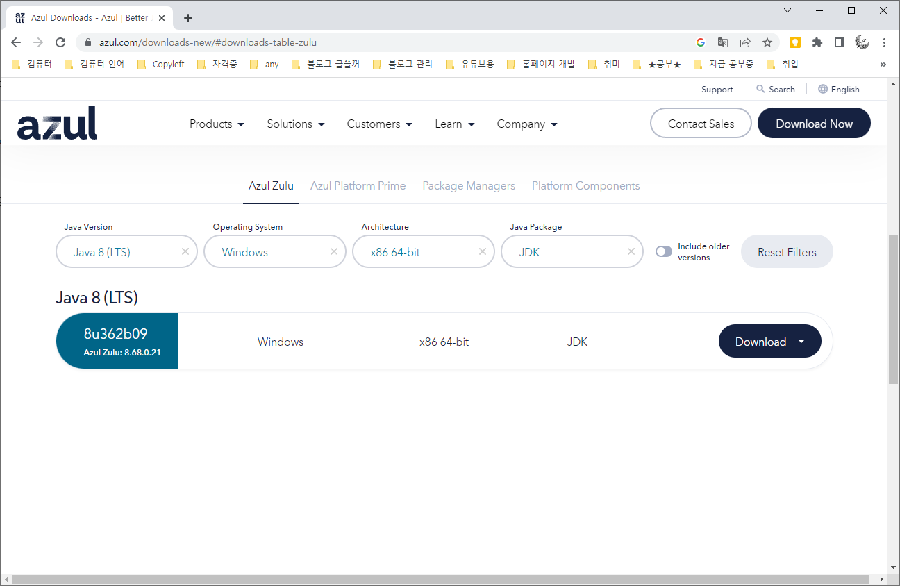 위 링크로 들어가서 스크롤을 내리면 원하는 자바 버전을 선택할 수 있습니다.