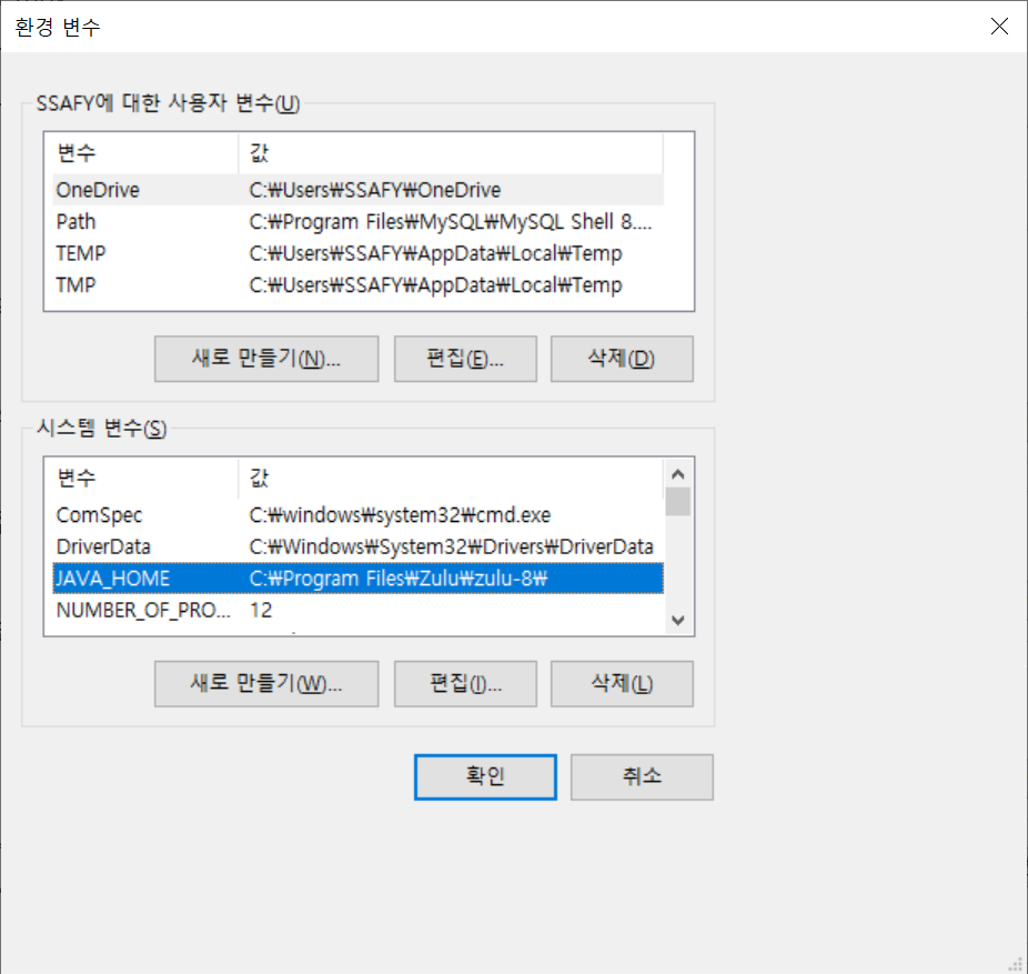 Win + R - sysdm.cpl - 고급 - 환경변수 - 시스템 변수에 JAVA_HOME을 추가해줍니다.