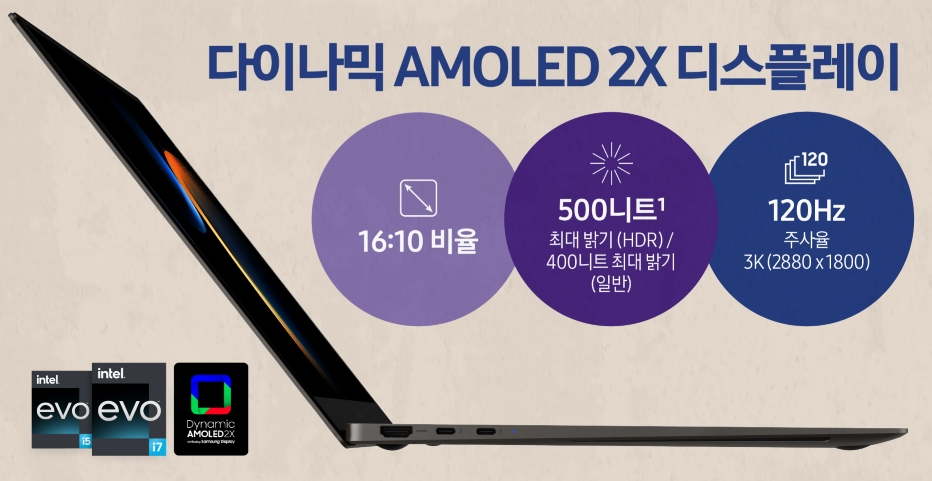 개선된 디스플레이 (16:10 화면 비율, QHD 지원, 120Hz 지원)