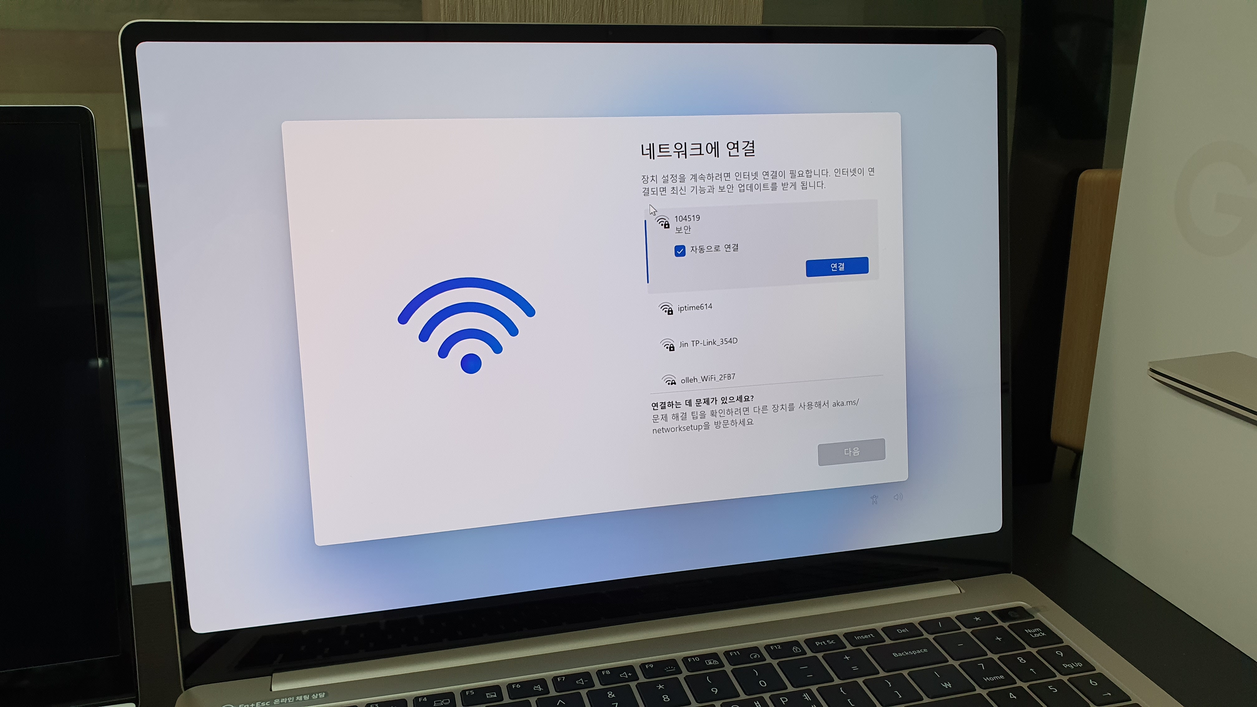 다시 다음 또는 예를 통해서 네트워크 연결 화면이 나오기 전에 앞의 작업을 진행합니다.