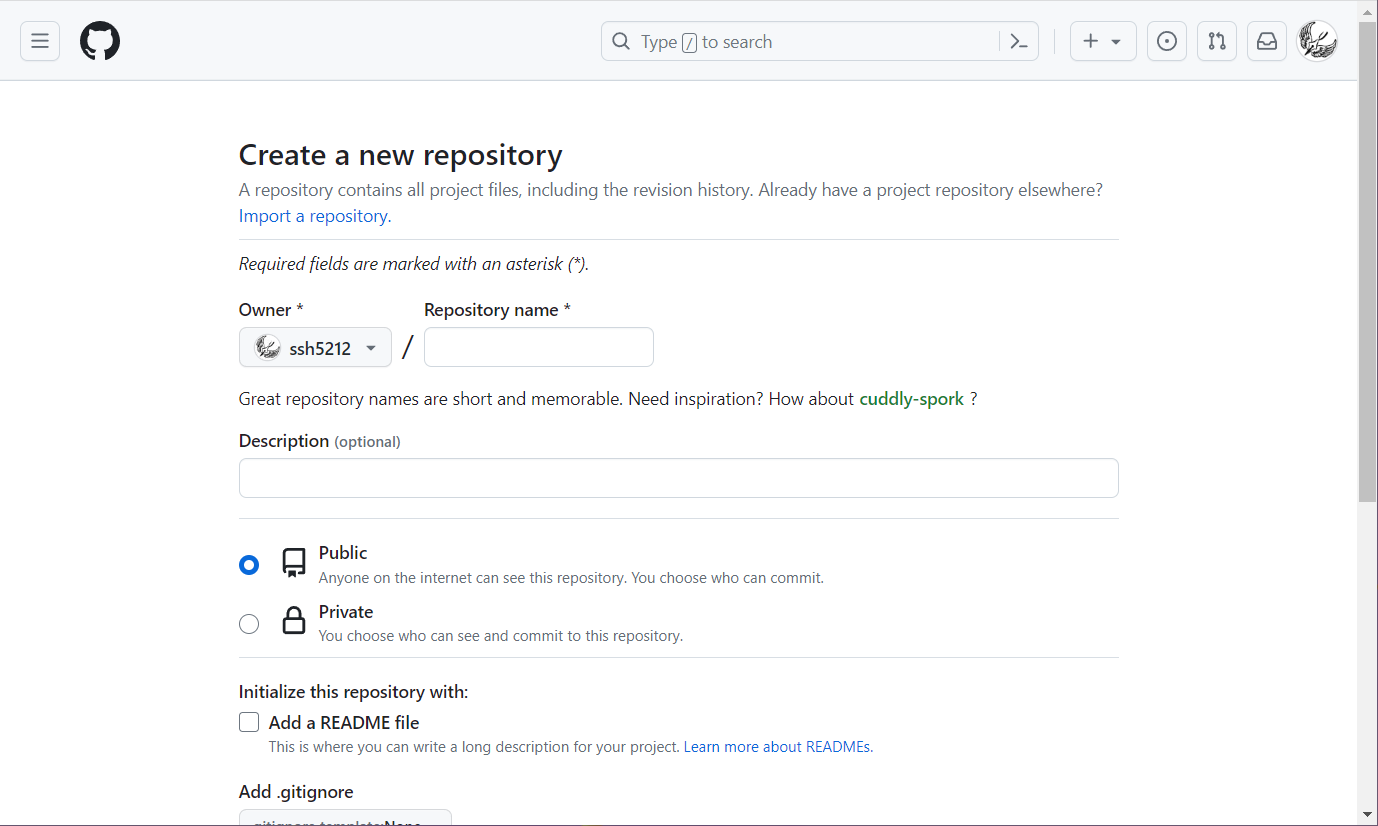 이때 리포지토리는 public, private 어떤 것을 사용하여도 무방합니다.
