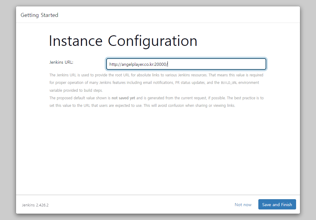 Jenkins 접근 주소까지 설정을 완료하면 모든 작업이 완료됩니다.