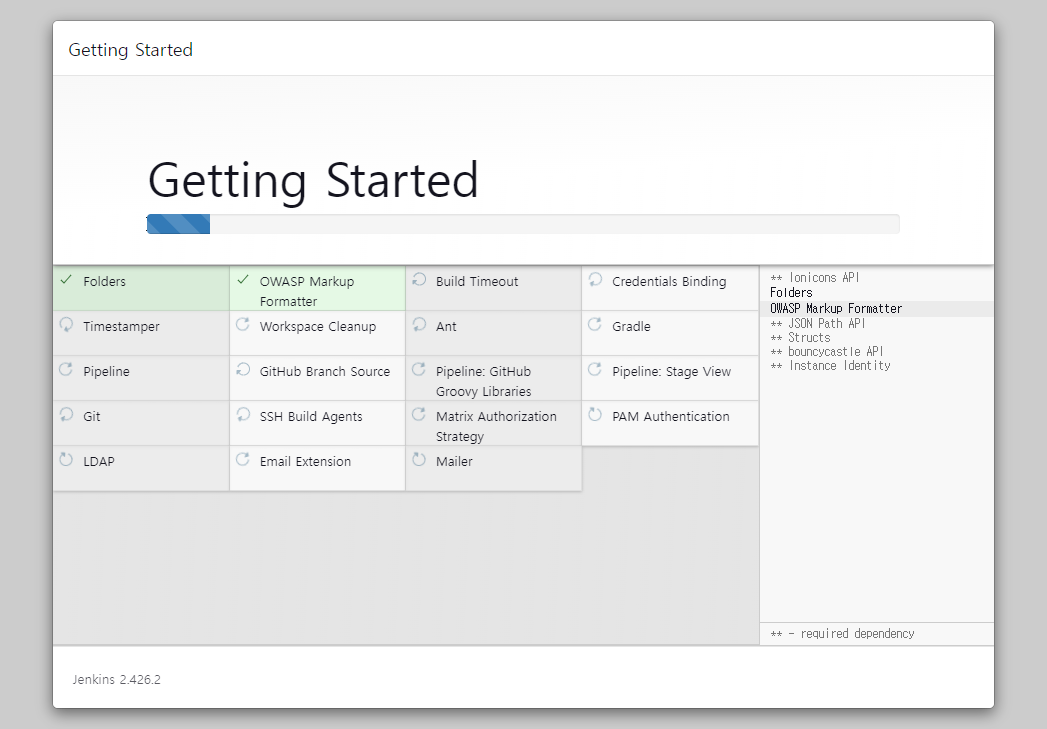 Install suggested plugins 를 눌러 설치를 진행합니다.