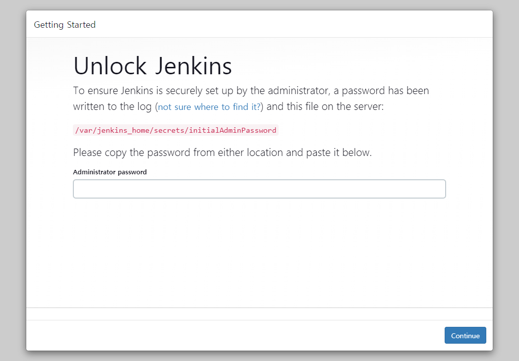 그래서 http://도메인주소:20000으로 접근하면, 위와 같이 jenkins 초기화면이 출력됩니다.