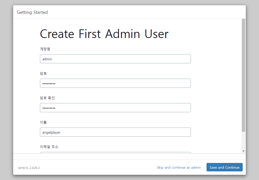 작성 후 Save ans Continue를 눌러주세요.