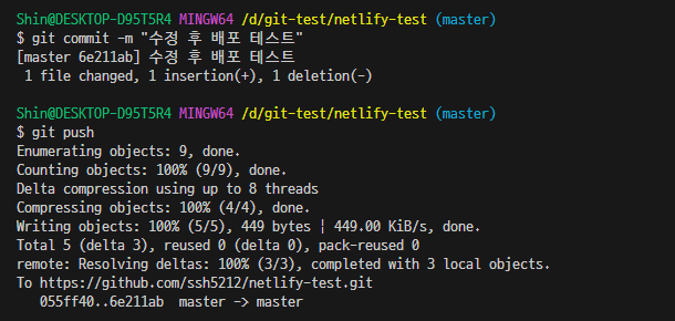 일부 데이터를 변경한 후 git push를 진행해 보았습니다.
