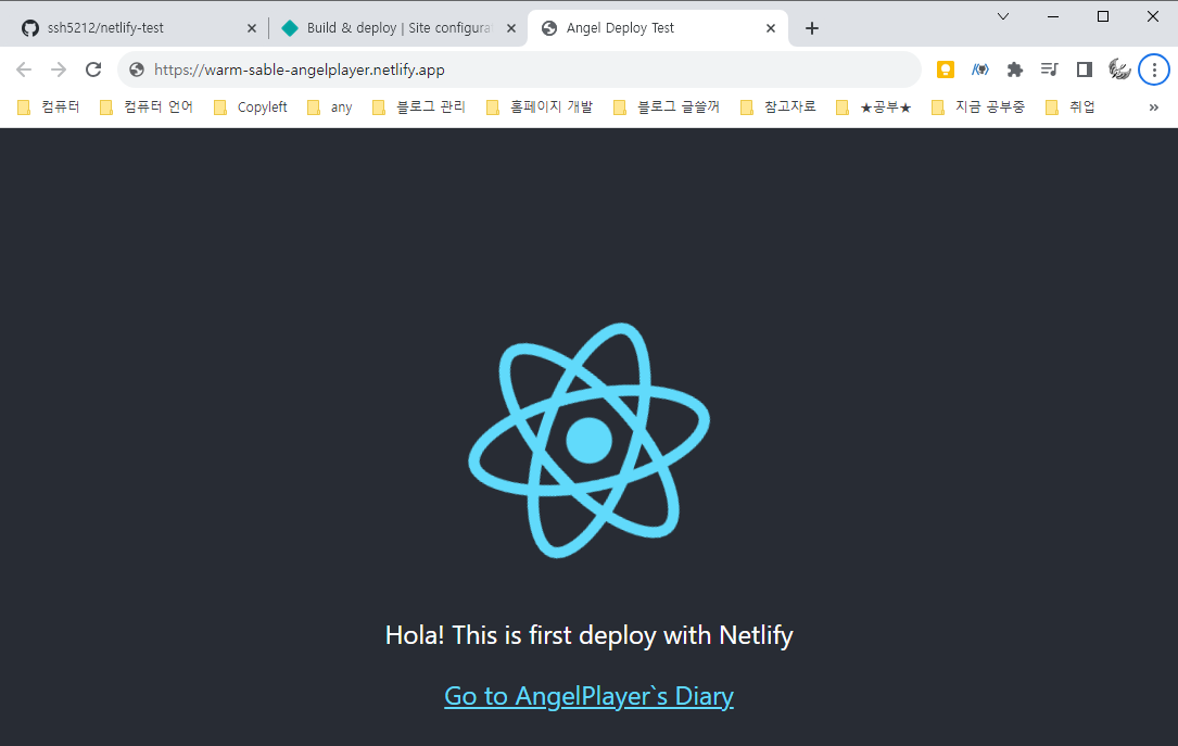 저의 경우 netlify-test(root 디렉토리) 아래 create-react-app을 통해 생성된 angel-deploy-test가 해당되니다.