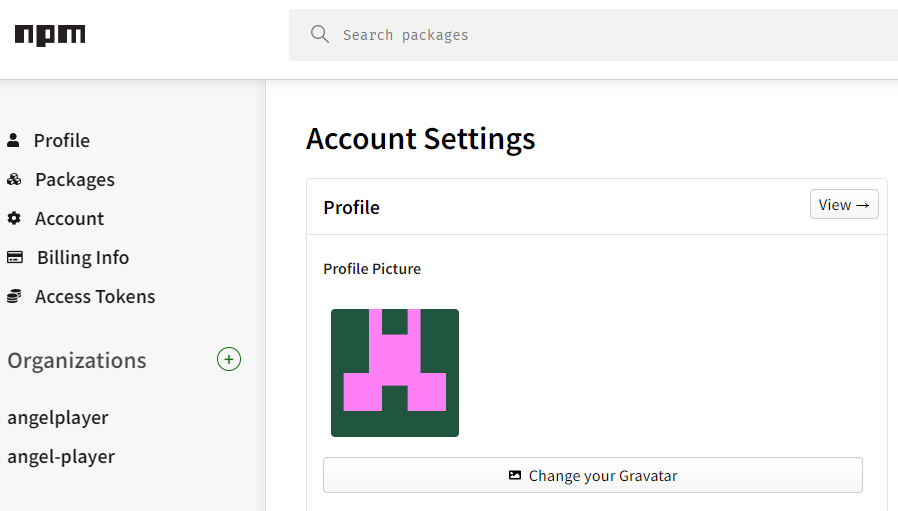우선 npm Organizations의 이름을 변경하였다.
