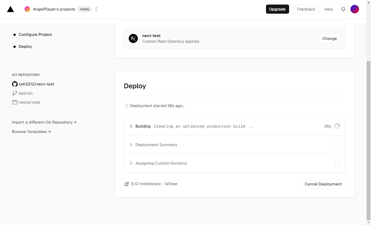 Deploy를 누르면 배포를 위한 빌드 작업 등을 진행합니다.