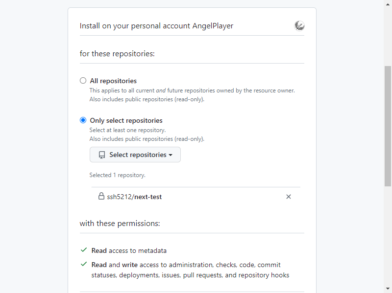 전체 설치도 가능하지만 저는 하나의 Repository에서만 테스트를 진행할 것이므로, 특정 Repository를 선택해서 설치하는 방법을 선택하였습니다.