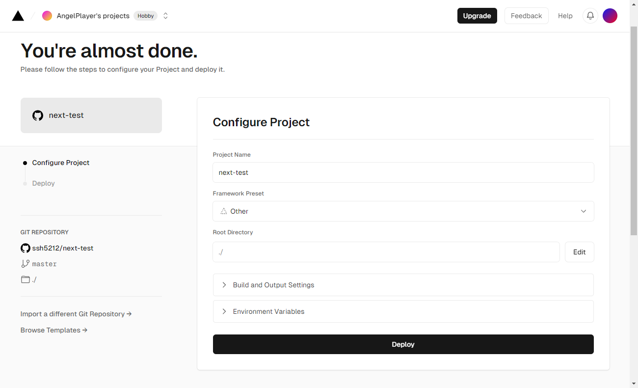 package.json에서 수정하거나 추가한 스크립트가 있다면 Build and Output Settings에서 수정이 가능합니다.