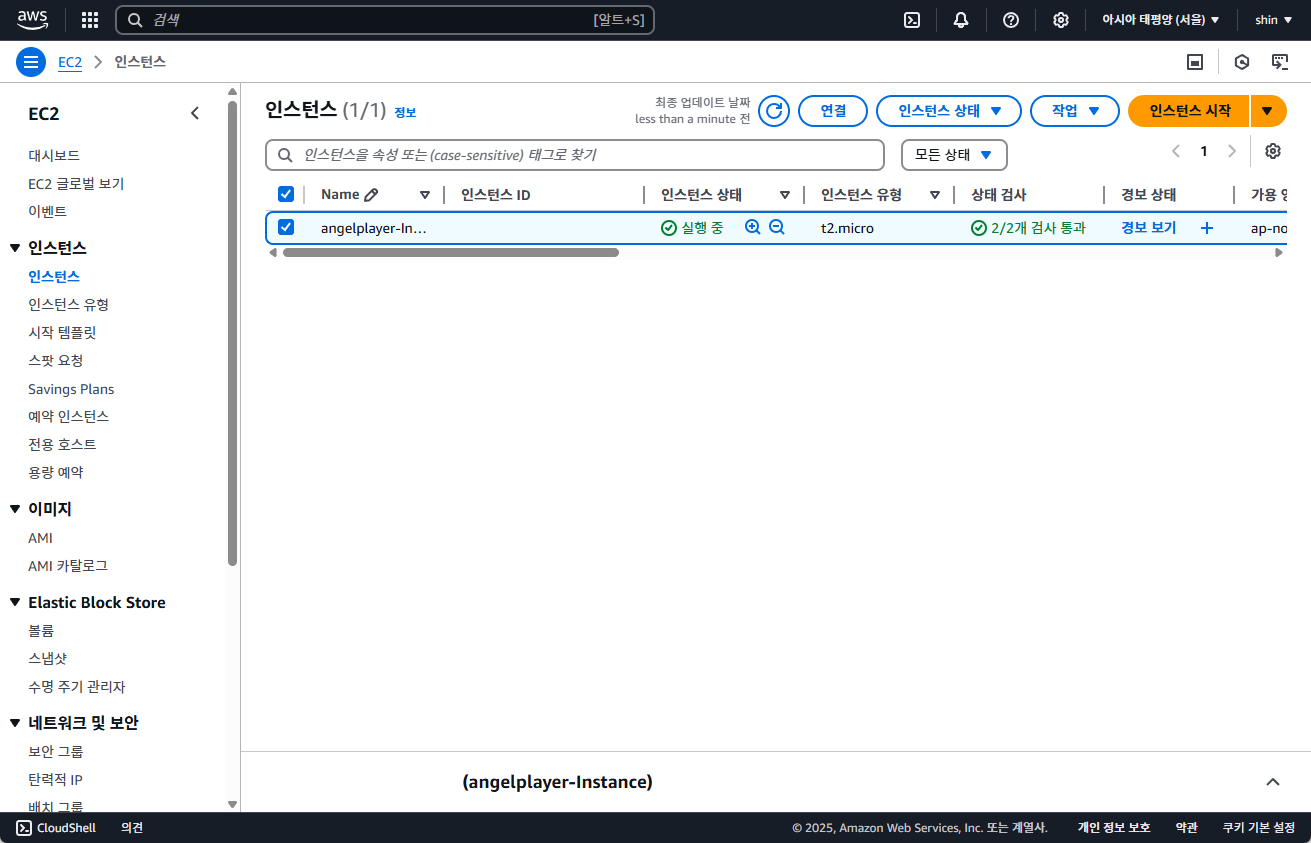 다시 EC2 대시보드로 돌아가, 인스턴스 - 인스턴스로 이동합니다.