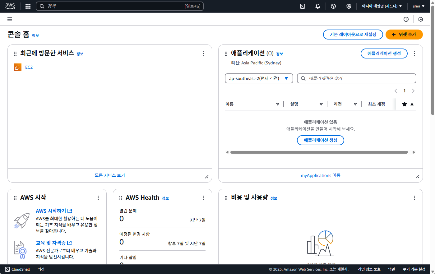 가장 먼저 AWS의 리전(Region)을 변경해줍니다.