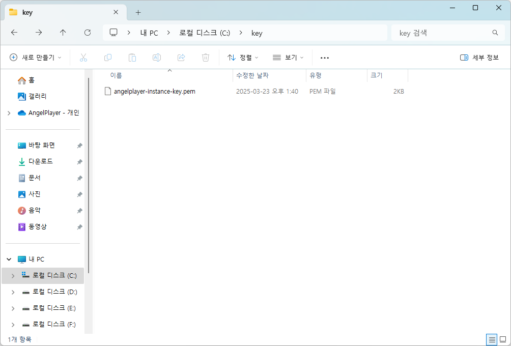 저는 C드라이브 - key 위치에 저장해두었습니다.