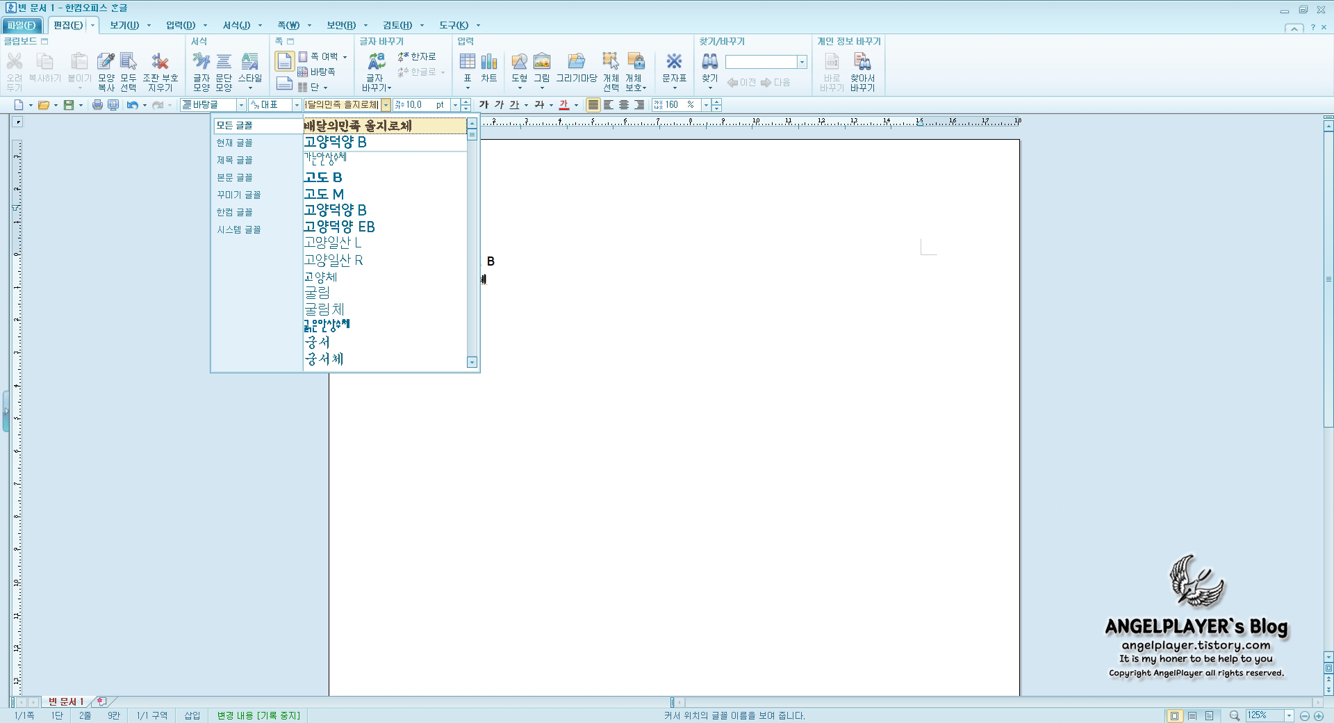한글에서 설치를 완료한 글꼴이 잘 적용되는 것을 확인할 수 있습니다.