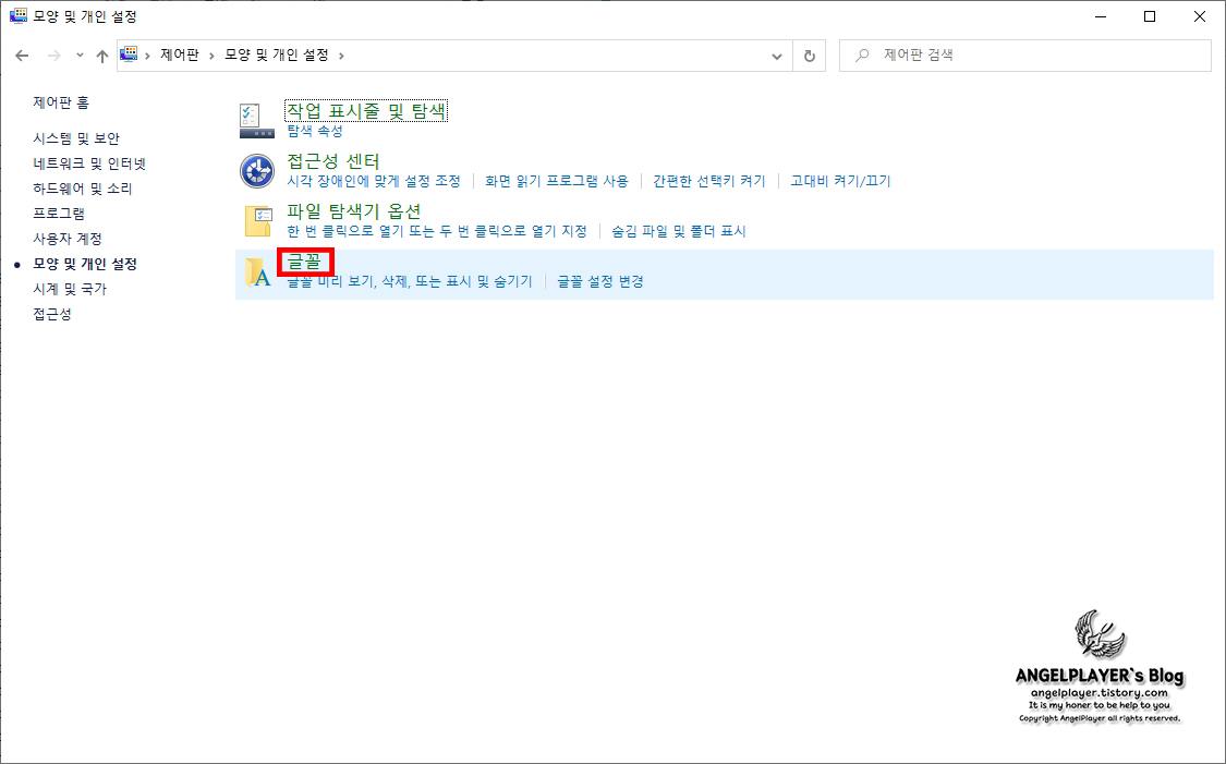 이미 설치 되어 있는 글꼴들이 들어있는 창이 나타나는데요.