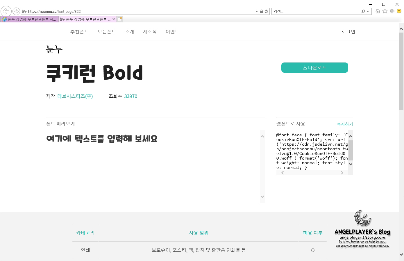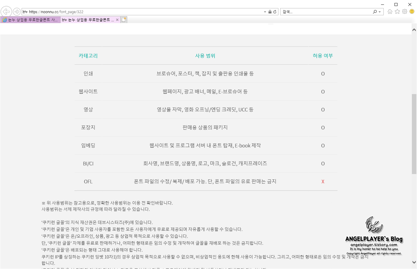 아래에는 해당 글꼴을 저작권 없이 이용가능한 범위까지 표로 작성되어 한눈에 알아보기 쉽도록 제작되어 있습니다.