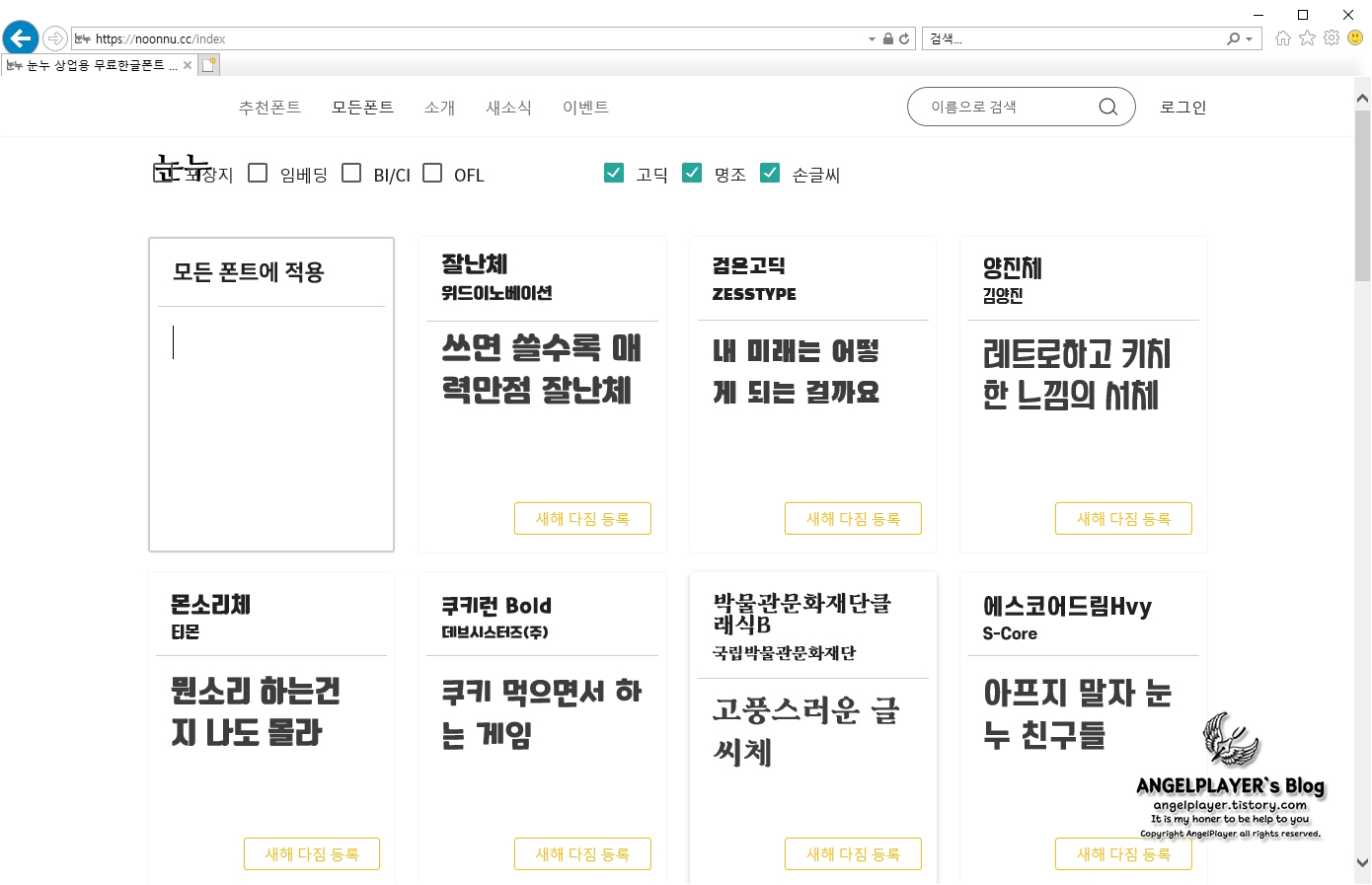 오늘은 이러한 무료 폰트들을 한꺼번에 미리보기로 비교하고, 다운로드가 가능한 사이트를 소개하려고 합니다.