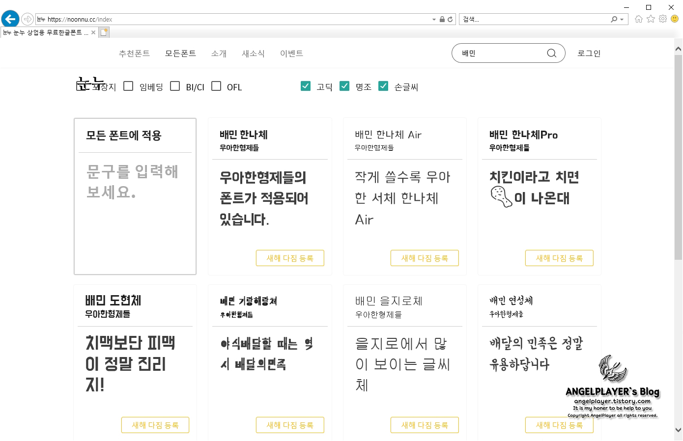 최근에는 이런 사회적 변화에 발맞추어 개인 혹은 기업이 무료로 다양한 글꼴을 만들어 베포하고 있는데요,