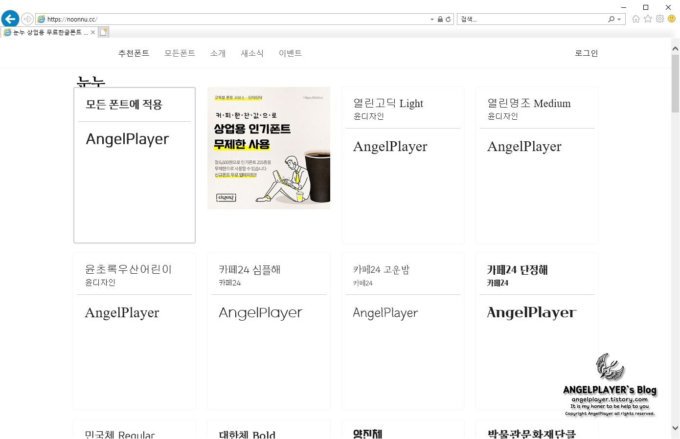 해당 사이트는 글꼴 파일을 직접 가지고 있지 않고, 글꼴 제작자 혹은 제작한 회사의 사이트로 링크가 되어 있습니다.
