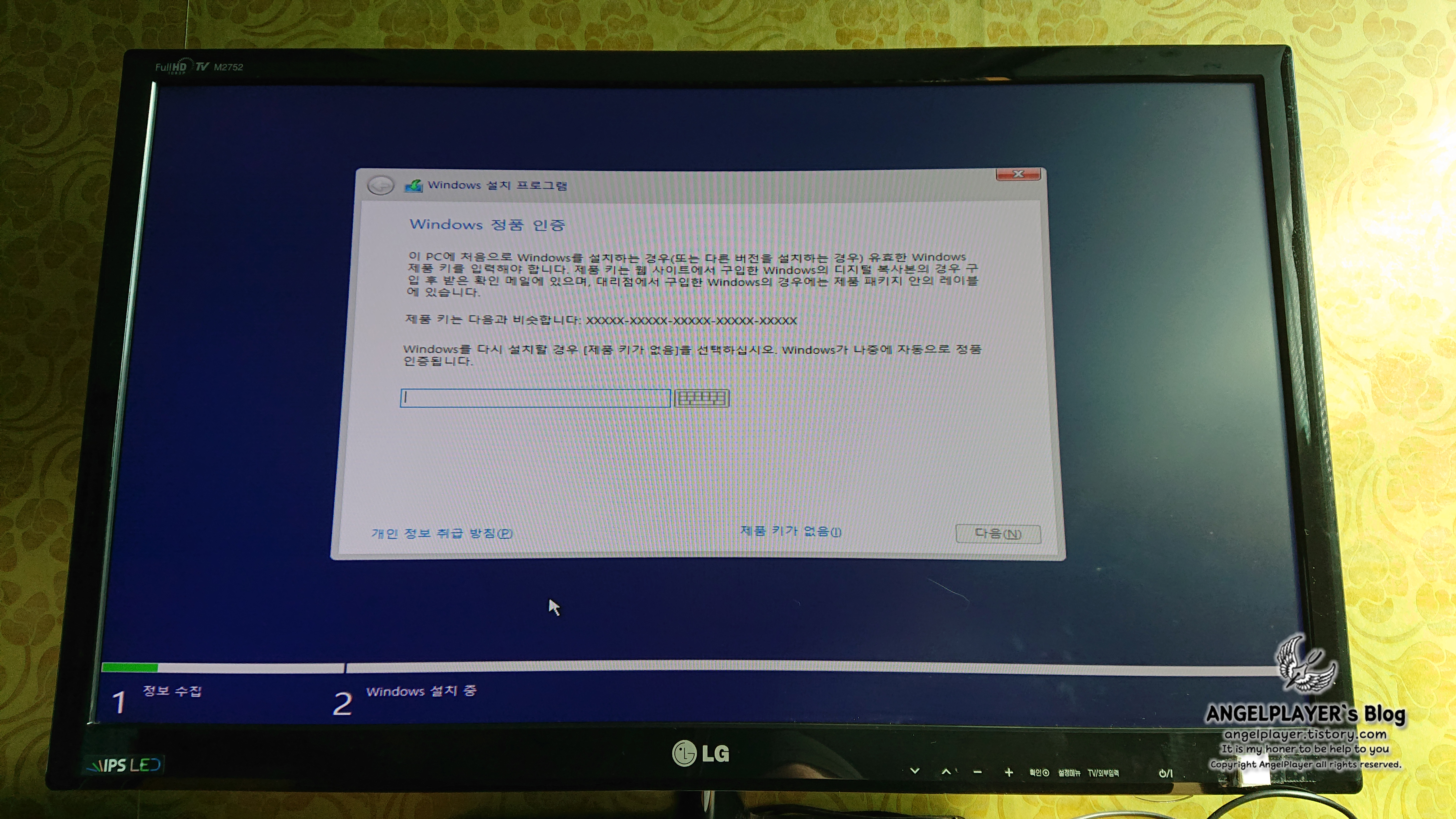 대망의 정품 인증 화면, 이전에 구매한 세미 윈도키를 입력합니다.