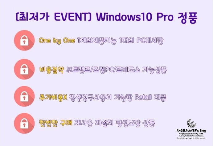 윈도우 10의 경우 마이크로소프트가 10 이후로는 더 이상 새로운 윈도우를 내지 않고 지속적인 업데이트를 해나갈 방침이라고 하여 정품 구매를 하는 것도 나쁘지는 않아 보입니다. 에디터도 이런 MS의 방침을 보고 두 개의 정품 키를 구매하였고, 노트북의 경우에는 이용을 거의 하지 않아 세미 윈도우가 인증이 풀릴 때까지 계속 이용하고 있지만, 정품 인증이 풀리거나 어느 정도 지갑의 여유가 생긴다면 노트북도 정품을 구매해 줄 생각입니다. (지갑 사정이 계속 좋지 않은가보네요..)
