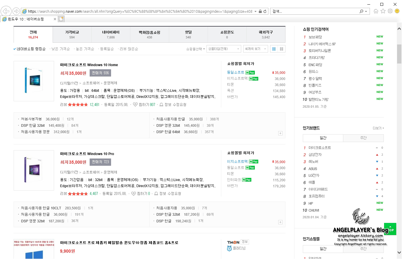 우선 네이버 쇼핑에 윈도우 10을 검색하여 보도록 하겠습니다.