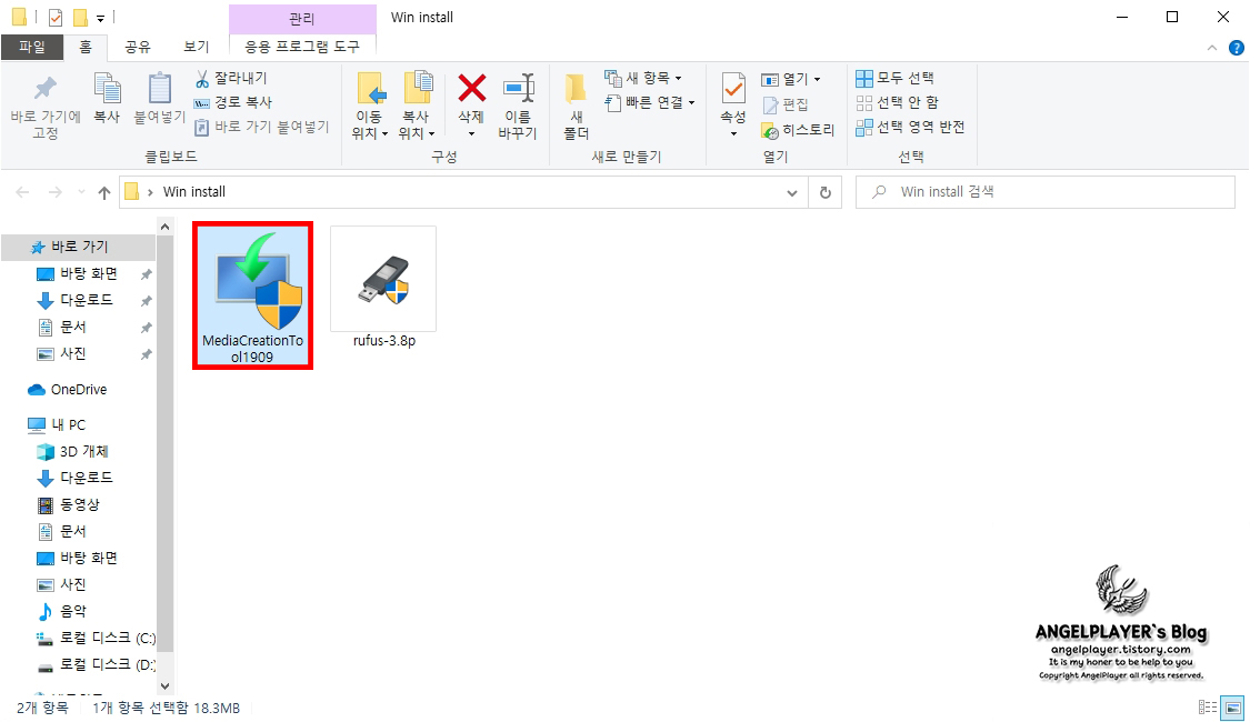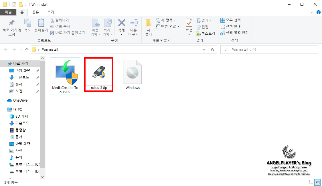 지금까지 잘 따라오셨다면 폴더에 rufus와 windows.iso파일이 있을 것입니다.