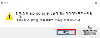 (앞에서도 언급했듯이 USB의 파일이 지워집니다! 다시 한 번! 중요한 파일은 없는지 확인 해주세요!)
