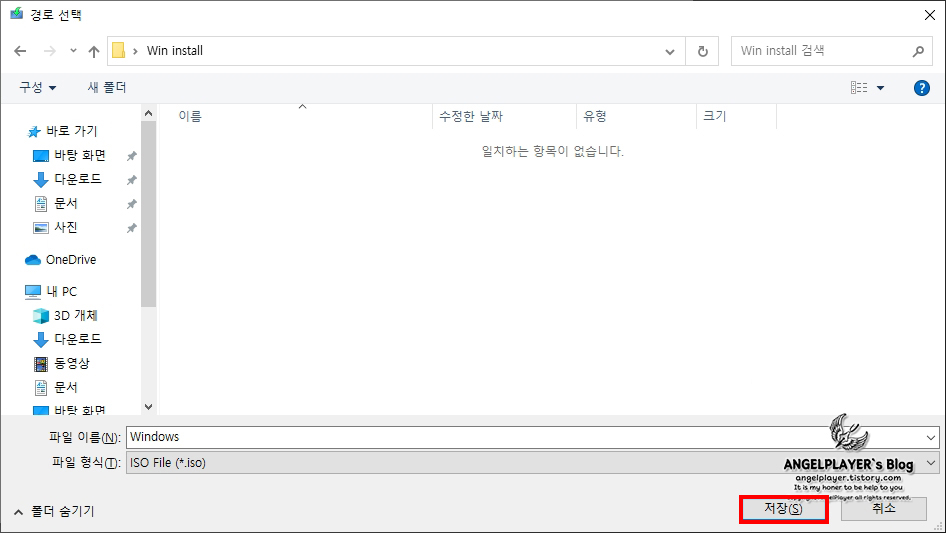 이전 화면에서 [다음]을 눌렀다면 ISO파일을 저장할 경로를 선택하는 화면이 나옵니다.